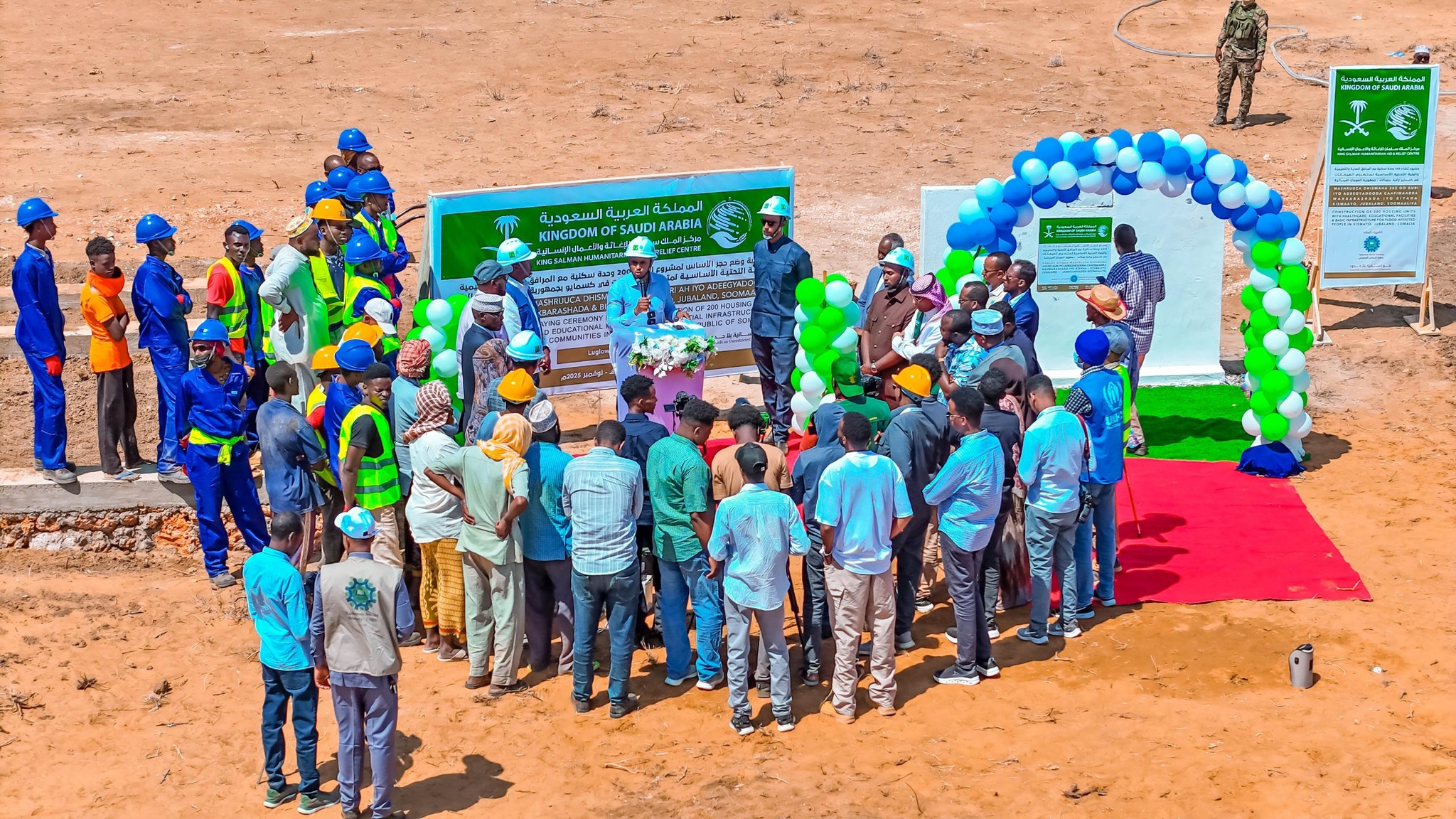 Waxay noqon kartaa sawirka ‎masrax iyo ‎qoraal odhanaya '‎لسعودية KINGDOM الالإنسانية KING SALM للاممباة DE الحر المملكة AUDI ARABIA س الملك مركز RELIEF CENTRE والتعليمية الصحية المرافق مم الفيدرالية الصومالى بجمهورية DHAGAX DHIGGA MASHR CAAFIMAADKA, WAXBARAS FOUNDATION STONE LAYING C WITH HEALTHCARE AND EDUL FOR FLOOD-AFFECTED comR الشريكالمنفذ المنفذ الشرياء Tadamun Social Society الاجتماعي التضامن جمعية لمش الأساس حجر وضع مناسبة ป الأساسية التحتية والبنية AH IYO ADEEGYADOODA UBALAND, SOOMAALIYA ON OF 200 HOUSING UNIT L NFRASTRUCTURE PUBLIC OF SOMALIA 02 حدون ل انسانية نحو in Unrestricted Humanity‎'‎‎